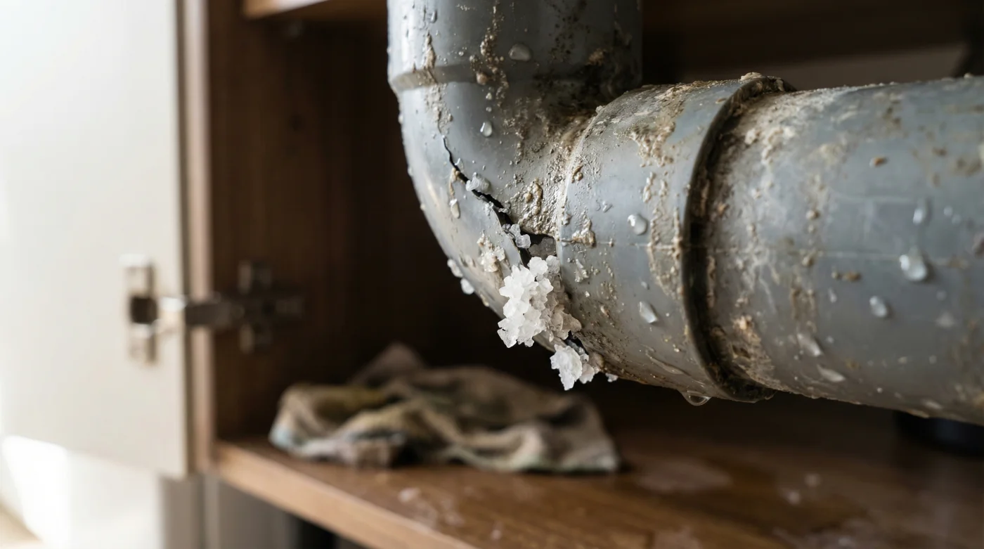 El gas burbujea y busca escapar frenéticamente por donde puede. El agua simplemente se escurre. ¿Pero la sal restante? Esa se queda esperando en las curvas oscuras de tus tuberías. Cuando este acetato de sodio se mezcla con la grasa fría de los alimentos y el jabón residual, ocurre una transformación silenciosa. La mezcla cristaliza, formando una masa calcificada que se adhiere a las paredes de tu tubería, como si la casa respirara a través de una almohada cada vez más apretada.
